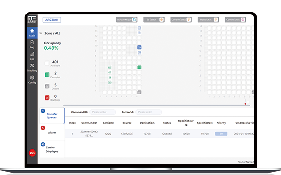 给予对STK的智能化管理功能,遵循SEMI E88协议,接收客户上位系统如MCS的命令指派来实现对晶圆盒的入库和出库操作。配合3D相机,可快速实现AutoTeach 功能,方便工厂安装实施。支持RFID、SmartTag 等标签的读取。搭配九州酷游 ku游自研的RFID、SmartTag、E84模块,让设备读取成功率达到同行领先标准。